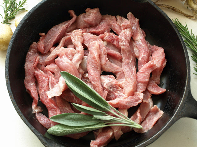 1.12 lbs. Pastured Pork Stir Fry, $12.50/lb.