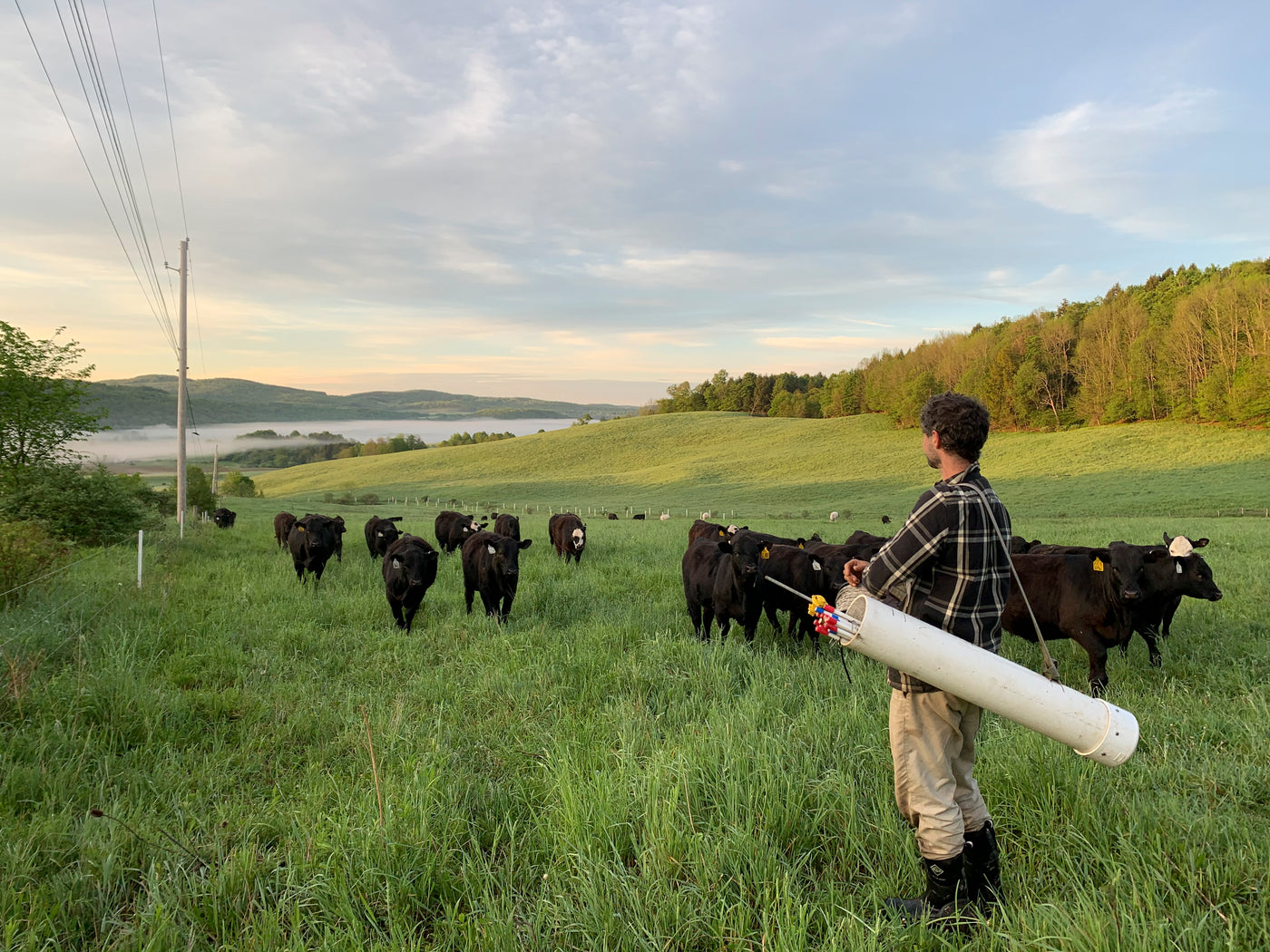 Most smaller, eco-farm type enterprises do use the word 'pastured', typically in relation to pigs and poultry, but occasionally with beef and lamb too. In order to meet the modern customer's expectation of how meat should taste, both pigs and poultry must be supplemented with more digestible feed than can be found in the roughage of grass. Typically this supplement is grain based, but occasionally an enterprising farmer finds a human food discard stream that is not grain and can meet nutritional needs for hogs and/or birds (expired dairy is one possibility). While they live on pasture, pigs and poultry raised outside are called, "pastured", but not "grass fed" because they are given a supplement of some sort. We estimate that during finishing our pigs eat roughly 50% of the volume of their feed as pasture and 50% as grain ration. Meat chickens grow so fast they get more than 90% of their feed from the grain bin. But even though grass fed chicken isn't possible, Hens that lay eggs are more competent foragers than meat birds, but they still get 80% or more of their meals from the grain trough.
