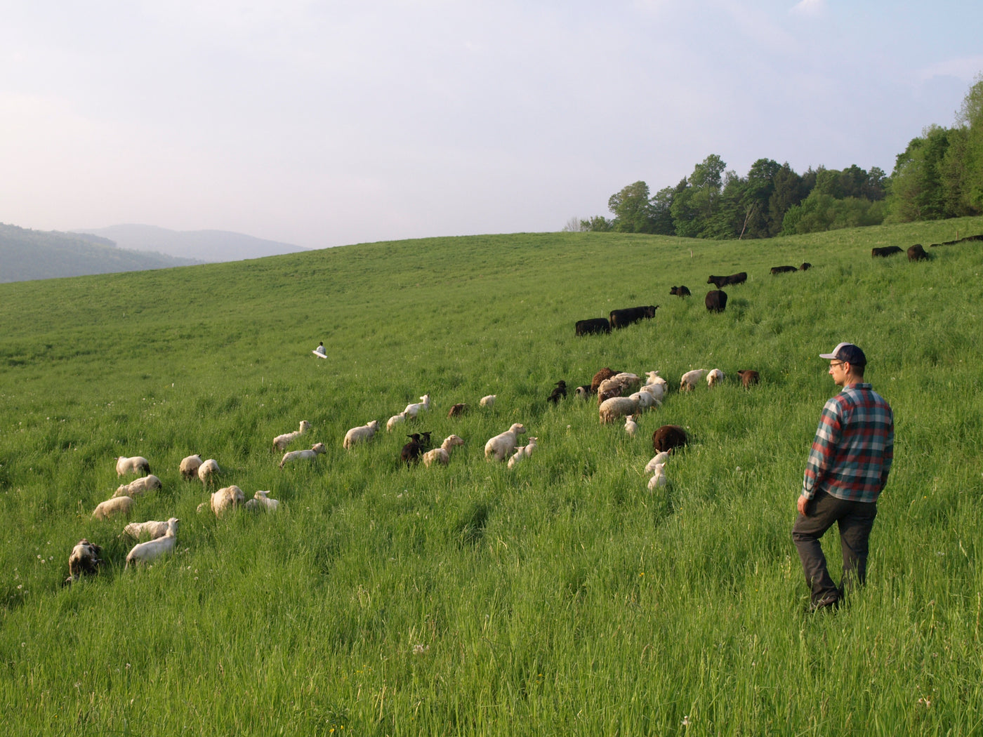 One reason sheep work so well with cows is that they favor different species of plants. Sheep will actively seek out goldenrod and milkweed, which cows generally avoid. When it comes to bushes and brush, sheep will browse back branches and strip bark from trunks. Together, sheep and cows transform scrub and marginal land into beautiful pasture much more effectively than either could do alone. Compared to my cows, I have a pretty small sheep herd. I expect them to eat perhaps a tenth the amount of grass my cows do. Yet the impact the sheep have on pasture quality is outsized.